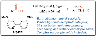 (39) Jiahui Qian, Yu Zhang, Weining Zhao, Peng Hu*, Decarboxylative halogenation of aliphatic carboxylic acids catalyzed by iron salts under visible light. Chem. Commun., 2024, 60, 2764–2767.