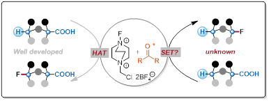 (43) Yu Zhang, Jiahui Qian, Miao Wang, Yahao Huang, Hansjörg Grützmacher, Peng Hu*, Ketones as ideal photocatalysts for decarboxylative fluorination and a competition with C(sp3)-H fluorination. Chem Catal. 2024, 4, 101162.