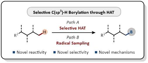 (35) Miao Wang, Yahao Huang, Peng Hu*, Terminal C(sp3)–H borylation through intermolecular radical sampling. Science 2024, 383, 537–544. (//www.science.org/stoken/author-tokens/ST-1707/full) (Highlighted by National Science Review, 2024, 11, nwae105; 亮点评述:Chin. J. Org. Chem. 2024, 44, 1697-1698; 新华社,光明日报,科学网等媒体报道。)