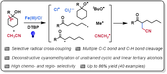 (27) Wei Liu,‡ Qiang Wu,‡ Miao Wang, Yahao Huang, Peng Hu*, Iron Catalyzed C-C Single Bond Cleavage of Alcohols, Org. Lett. 2021, 23, 8413–8418. (Featured by Synfacts, 2022, 18, 55; Org. Chem. Highlights, 2022, September 12. Preprint: 10.33774/chemrxiv-2021-85brt-v2)