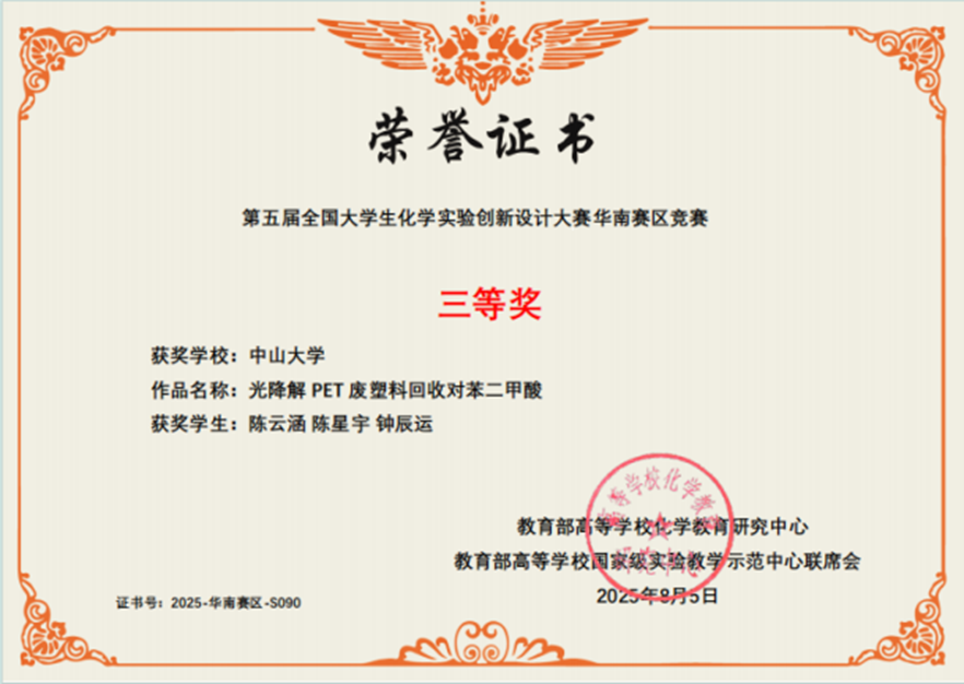导航痕迹 日本三级片 化学国家级实验教学示范中心 化学竞赛 “微瑞杯”第五届 (2024年和2025年) 全国大学生创新实验设计竞赛 日本三级片 -新创实验-华南赛区三等奖 扫描此二维码分享 日本三级片 -新创实验-华南赛区三等奖 发布人:网站管理员 发布日期:2025-10-09 光降解PET废塑料回收对苯二甲酸