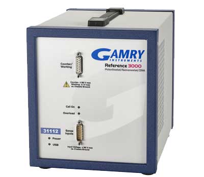 Reference 3000 是独立运行的高电流、高性能恒电位仪,其具有从 3 安培到 300 皮安的 11 种电流范围,以及高达 32 伏特的槽压。 而内置的电化学阻抗谱电子设备使得 Reference 3000 实现了 10 μHz 至 1 MHz 的测量频率范围。主要用于电池、燃料电池和超级电容器、合成化学、电镀研究、传感器开发、动力学和热力学测量、电化学阻抗谱、腐蚀测量和分析电化学。