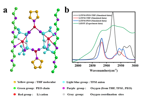 1、通过大科学装置先进结构表征技术、实验室经典表征技术和理论计算相结合,系统地研究了PEO/LiTFSI/THF的相互作用机制,提出了清晰的三元络合结构模型。