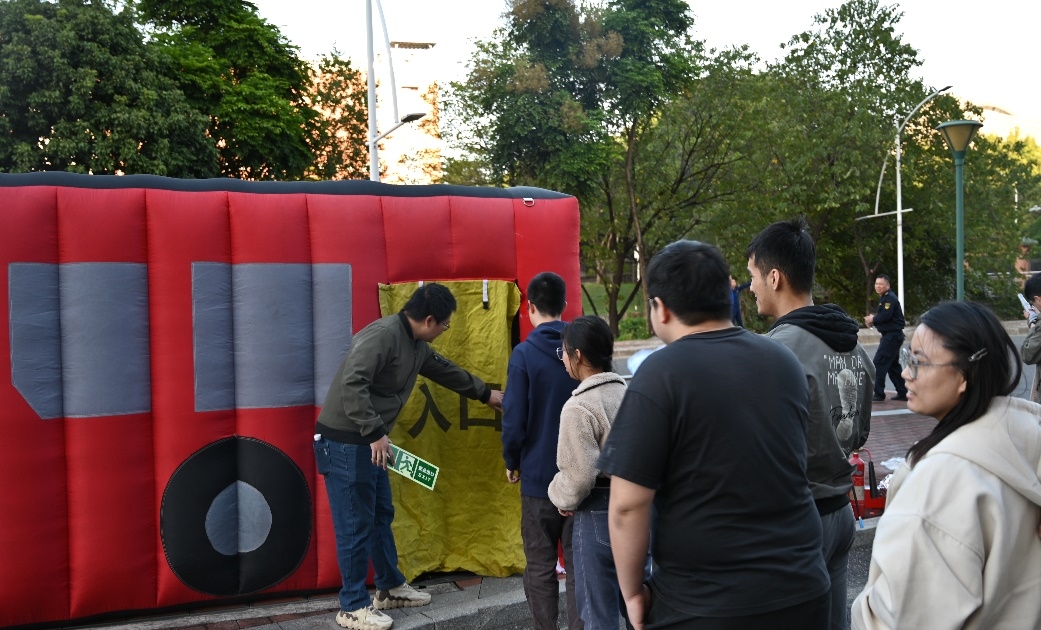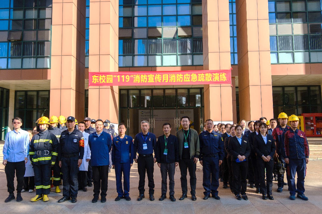 为使全院师生牢固树立实验室安全意识、掌握消防安全知识, 2024年11月29日,在广州市番禺区消防大队、学校保卫处、设备与实验室管理处等职能部门的支持下,“119”消防疏散演练系列活动在东校园化学材料综合楼顺利开展。广州市番禺区消防救援大队大学城救援站指导员徐勃、学校保卫处副处长陈欣然、主管李胜斌,设备与实验室管理处副处长郑仕勇、安全员郭鹏,日本三级片 党委书记冯双、副书记谭海燕、院长助理朱庭顺教授,以及化学材料综合楼师生共300余人参加此次活动。演练活动包括消防安全知识讲座、化学材料综合楼消防疏散演练、灭火器材使用及逃生训练帐篷体验等内容。活动由日本三级片 院长助理朱庭顺教授主持
