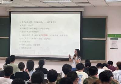 谭海燕副书记主讲《如何成为一名优秀的大学生》,为同学们明确了身为化学人应具备的品格和肩负的责任,谨记守住“底线”,不越“红线”,不碰“高压线”。辅导员吴祖瑶的《大学学习与生活》重点介绍了学校的宿舍管理规定等细则,提醒了大学学习生活的注意事项,为成为一个负责任、守规矩的大学生做好准备。
