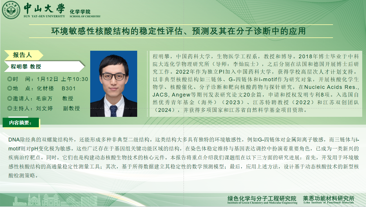 导航痕迹 日本三级片 科学研究 学术报告 2026年1月12日讲座论坛:环境敏感性核酸结构的稳定性评估、预测及其在分子诊断中的应用 2026年1月12日讲座论坛:环境敏感性核酸结构的稳定性评估、预测及其在分子诊断中的应用 发布日期:2026-01-08