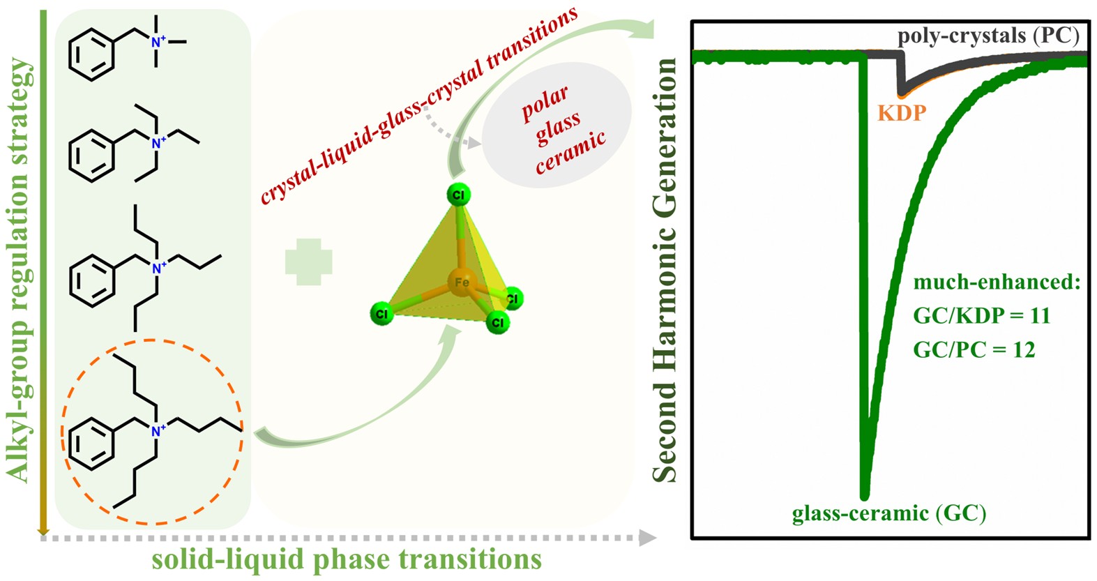 Modulating alkyl groups in hybrid quaternary ammonium salts to design polar glass-ceramic with strong nonlinear optical response