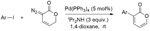 Synthesis of 3-Aryl-2-pyrones by Palladium-catalyzed Cross-coupling of Aryl Iodides with Cyclic Vinyldiazo Ester.