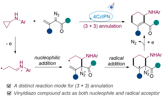 Photocatalytic (3+3) Annnulation of Vinyldiazo Compounds and Aminocyclopropanes.