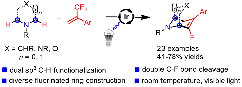 Photocatalyzed/Base-Mediated Defluorinative Three-Component Cascade Cyclization: Access to Monofluorocyclohexenes and 6-Fluoro-1,2,3,4-tetrahydropyridines.