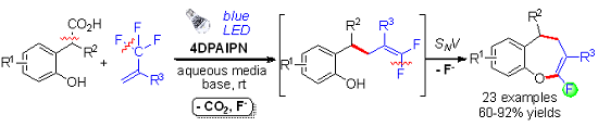 gem-Difluoro-Masked o-Quinone Methides Generated by Photocatalytic Radical (3+3) Annulation and Their (4+1) Cycloaddition with Sulfur Ylides.