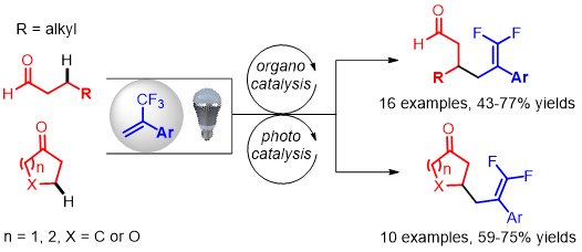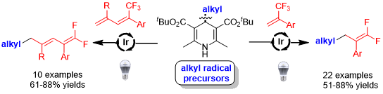 Regioselective Difluoroallylation of Alkylidenemalonates with Trifluoromethyl Alkenes: Synthesis of gem-Difluoro-1,5-Dienes and Their [2 + 2] Photocycloaddition.